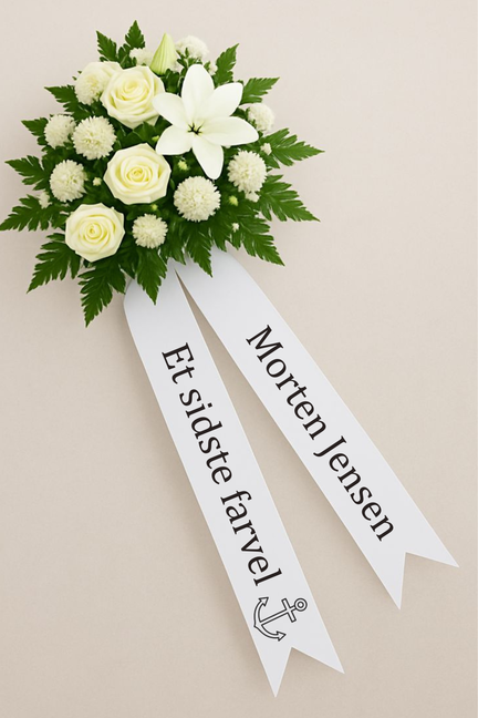 Et begravelsesbånd med tekst og anker er mere end blot en sidste hilsen, det er et symbol på håb, på stærke relationer og på en kærlighed der aldrig forsvinder. Det bliver en del af afskeden, et visuelt og følelsesmæssigt udtryk der holder fast på minderne.