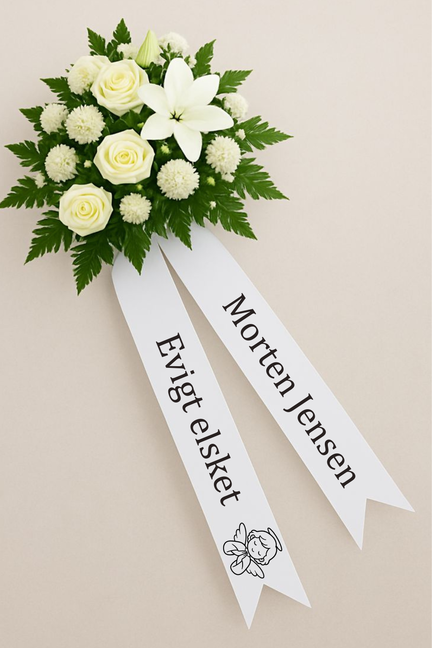 Et begravelsesbånd med tekst og engel er mere end blot en dekoration, det er et symbol på kærlighed, nærhed og omsorg. Det giver dig mulighed for at sige farvel på en smuk, personlig og værdig måde, samtidig med at det understøtter ceremonien med symbolik, trøst og æstetik.