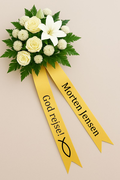Lad dette satinbånd med en fisk være en smuk og respektfuld detalje, der understøtter den sidste afsked.