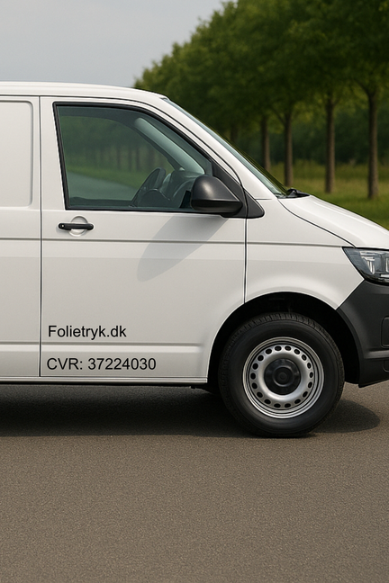 CVR-nummeret og firmanavn/logo skal være fast påført bilen – f.eks. med folie, klistermærker eller maling.