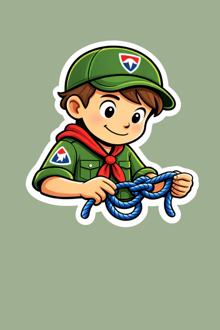 Et grøn spejder binder knob klistermærke er et motiv, der hylder spejderlivet, færdigheder i naturen og glæden ved friluftsliv. For mange spejdere er det at kunne binde knob en af de helt grundlæggende færdigheder, man lærer på spejdermøder og lejre.