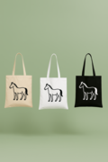 Denne mulepose er prydet med et smukt hestemotiv, der gør den til noget helt særligt. Tasken er lavet i bomuld og er både rummelig og slidstærk, så du kan bruge den til alt fra indkøb og fritid til skole og arbejde. Du kan vælge mellem en let standardudgave eller en mere kraftig premiumversion med bund.