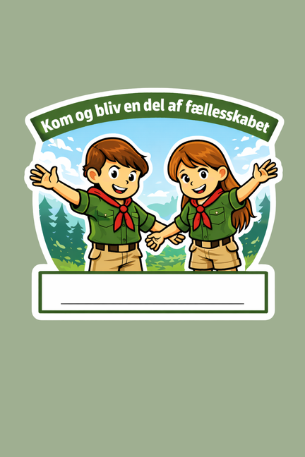“Kom og bliv en del af fællesskabet” er et varmt og indbydende budskab, der passer perfekt til spejderlivet. Det signalerer eventyr, sammenhold og oplevelser i naturen, hvor nye venskaber og fælles udfordringer skaber stærke minder. Et enkelt motiv, der inviterer børn og unge til at være med i et aktivt og inkluderende fællesskab.