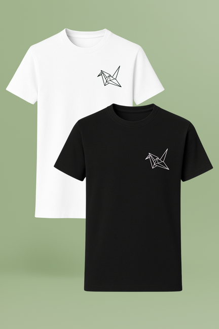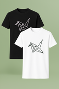 T-shirt med origami-trane – symbol på håb, ro og skønhed i enkelhed
