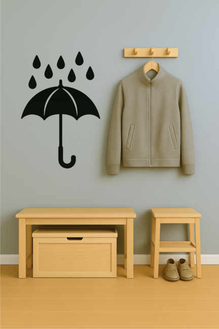 Nogle gange er det netop de små detaljer, der gør en forskel. En sticker med paraply og regndråber kan gøre et koldt spejl mere levende, give vinduet personlighed eller fungere som visuel markør i et rum, hvor man tager sko og jakke af.