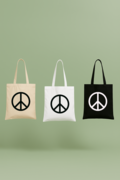 En enkel og praktisk mulepose med det klassiske Peace-motiv. Tasken er lavet i 100 % bomuld og trykt med sort eller hvid folie, så designet står skarpt og tidløst. Perfekt til indkøb, studie, arbejde eller fritid og samtidig et bæredygtigt alternativ til plastikposer.