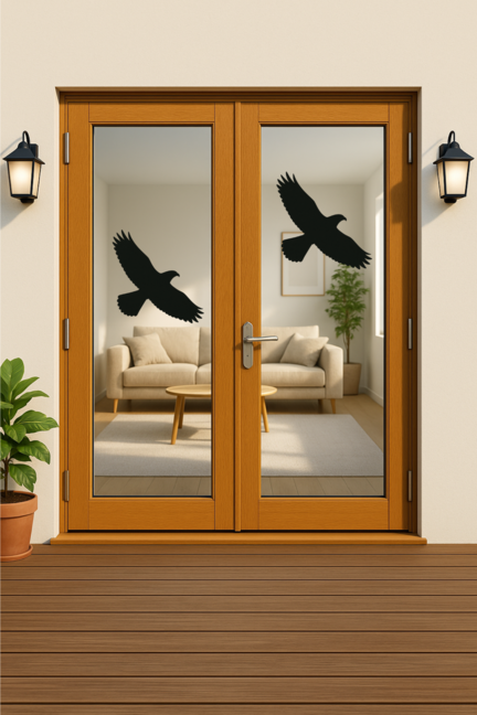 Rovfugle-stickers bruges ofte til at forhindre småfugle i at flyve mod glasruder hvor de ikke kan se forskel på himmel og spejlbillede. Stickeren virker som en naturlig advarsel så fuglene opdager ruden og ændrer retning i tide. På den måde er den ikke blot et dekorativt element, men også et lille bidrag til at passe på naturen.