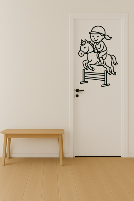 Med denne flotte springrytter sticker får du ikke bare en dekoration, du får et stykke identitet, som du kan tage med dig ind i dine omgivelser. Uanset om du er aktiv rytter, underviser, forælder eller bare elsker heste, vil motivet passe smukt ind i både hjemmet og stalden.